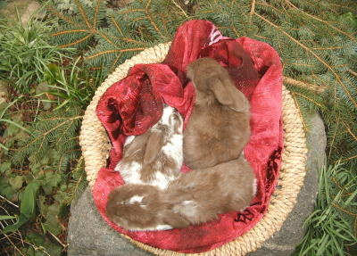 Das sind Flummi, Pünktchen und Schoko mit rund 3 Wochen.