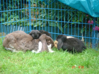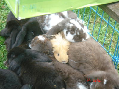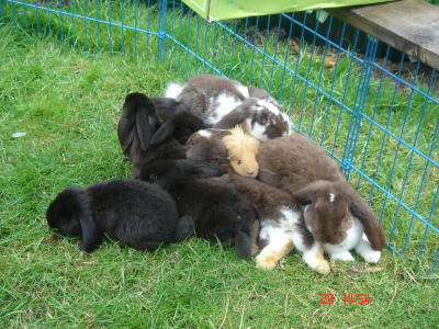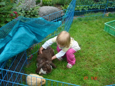 Unsere Hasen kennen Kinder, Hunde und auch Katzen.